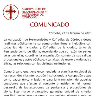 Junto a la presentación del cartel, se dará a conocer el vídeo promocional de la Semana Santa 2026, realizado por el equipo de “La Sangre y La Gloria”, con música compuesta por Manuel Roldán, que contribuirá a reforzar la proyección audiovisual de la Semana Mayor cordobesa.