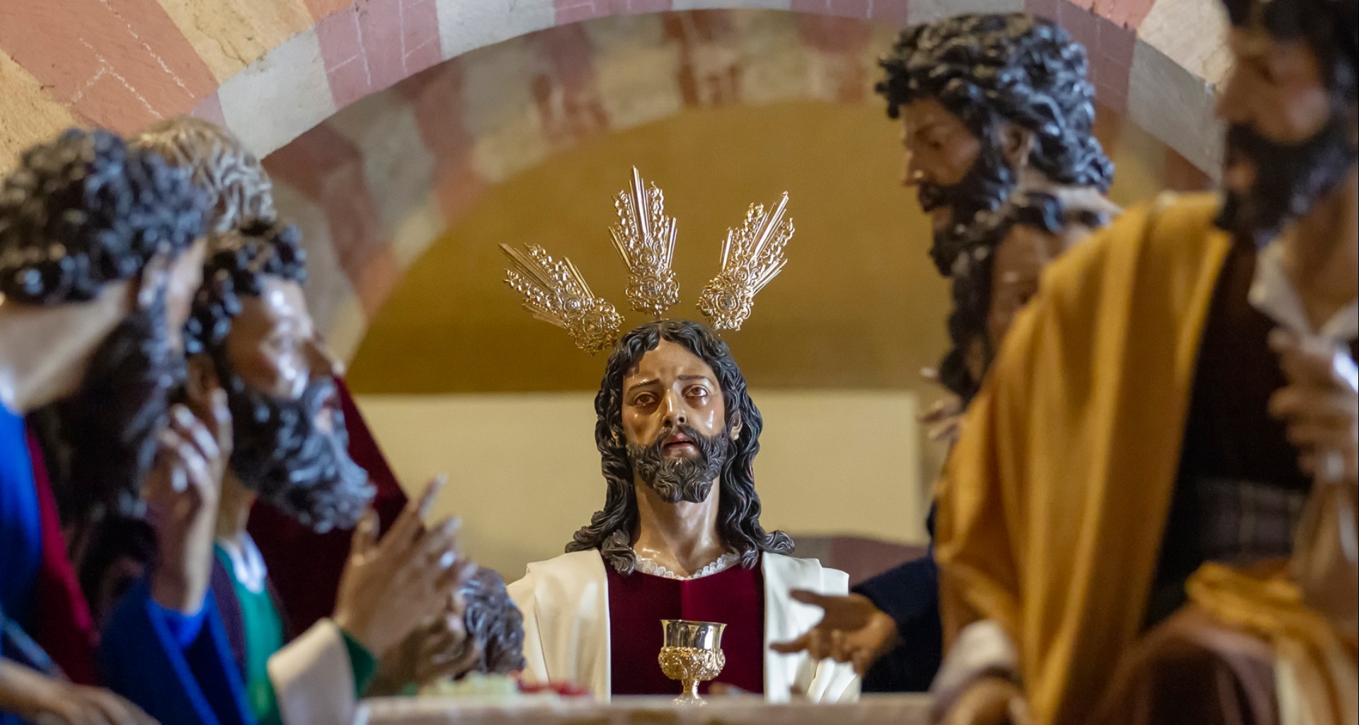 Nuestro Padre Jesús de la Fe. La primera imagen, tallada por Francisco Palos Chaparro en 1987, representa a Jesús en el momento de bendecir el vino durante la Última Cena. En 1993, se encargó una nueva talla al imaginero Miguel Ángel González Jurado, quien creó un grupo escultórico completo con los apóstoles. Esta imagen, bendecida en 1993, es una talla de vestir en madera de cedro, con una expresión serena y dramática, portando un cáliz que reproduce el usado por el párroco Antonio Gómez Aguilar.