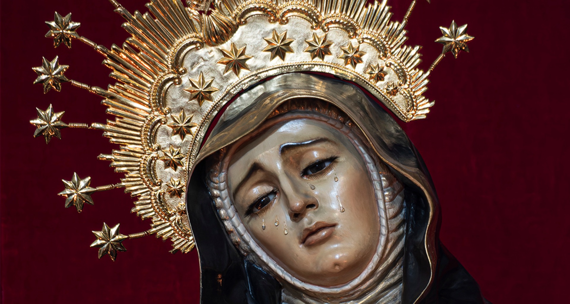 María Santísima Atribuida inicialmente a José de Mora y posteriormente a Diego de Mora, esta imagen de finales del siglo XVII representa a la Virgen arrodillada, en actitud de oración ante la muerte de su Hijo. Tallada completamente, rompe con el estilo de vírgenes de candelero. Su rostro, de singular belleza, muestra un dolor contenido, con seis lágrimas cayendo de sus ojos. Viste un rostrillo blanco de viuda y un manto azul oscuro con detalles dorados. Acompaña al Señor de la Caridad en la procesión del Jueves Santo. Ha sido restaurada en tres ocasiones, la última en 2001.