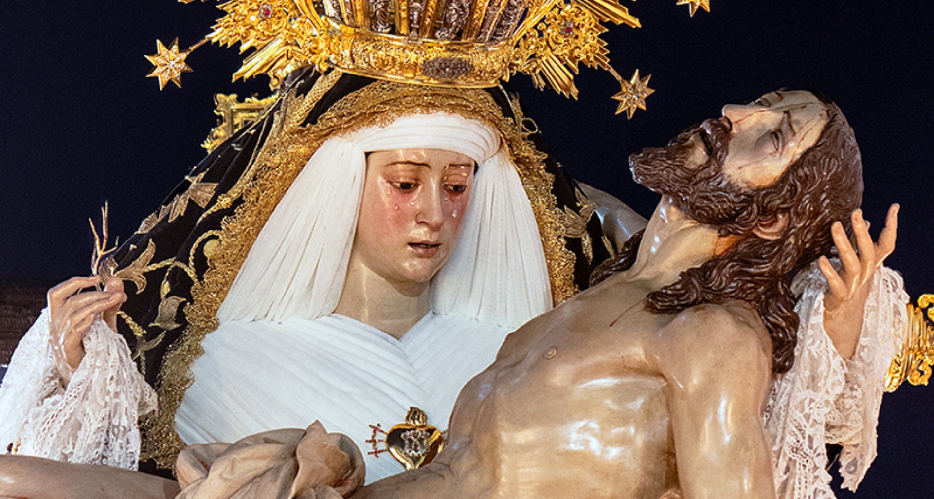 Ambas imágenes, talladas por separado, han sido veneradas juntas desde el siglo XVII, tal como lo atestiguan cuadros de la época. Solo han sido restauradas en dos ocasiones: en 1976 por Peláez del Espino y en 2010 por el Instituto Andaluz del Patrimonio Histórico, donde se recuperaron detalles originales y se renovaron elementos como las lágrimas de la Virgen.