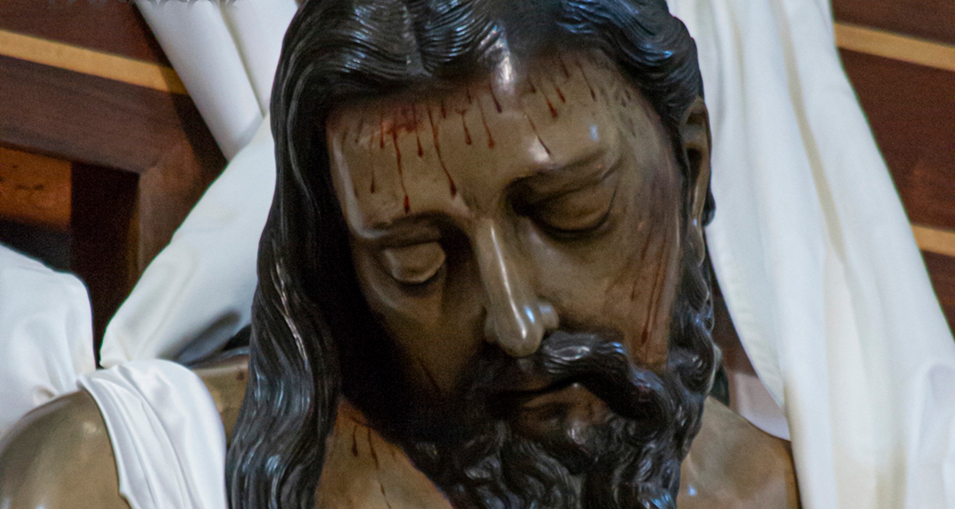 El rostro de Cristo, sereno y con los ojos cerrados, muestra un profundo realismo. Las gotas de sangre, los pómulos marcados y la barba simétrica reflejan la influencia de la escuela sevillana en su autor, probablemente un artista local. Actualmente, la imagen procesiona en una urna de madera de palosanto, policromada en caoba, obra de Rafael Juliá Villaplana (siglo XIX). La urna, de diseño elegante y rematada con una cruz de plata, permite admirar la talla desde todos los ángulos.